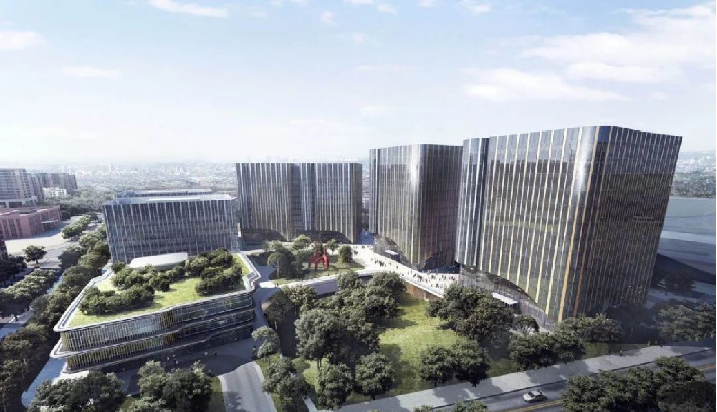 科技園項(xiàng)目一期總建筑面積約22.5萬平方米,包含6棟研發(fā)樓和2層地下車庫(kù)(地下共3層,一二期地下相互聯(lián)通),還設(shè)有下沉廣場(chǎng)和商鋪,敞亮的下沉廣場(chǎng)將所有建筑連在了一起。T6樓設(shè)置了戶外屋頂花園,特別鋪設(shè)